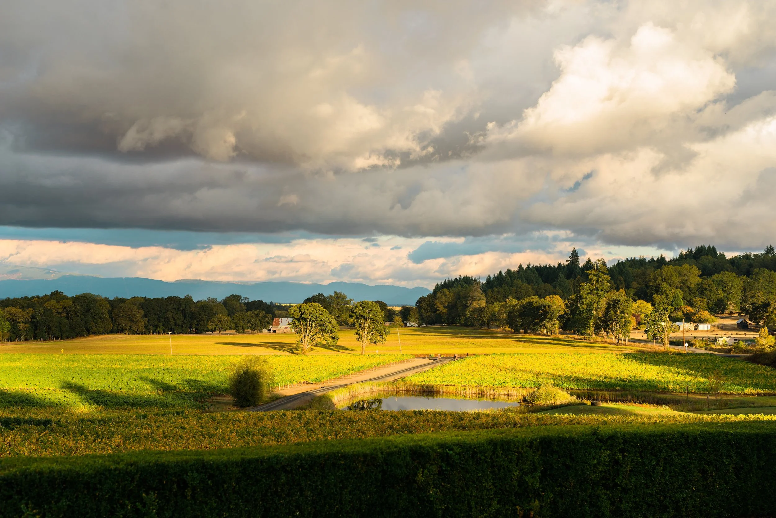 Our vineyard resides on a south eastern slope northwest of Eugene, OR in the Willamette Valley AVA. Sitting at 350-500 feet elevation we have expansive views of the Coburg Hills to the East. The first block of the vineyard was established in 1998, with plantings continuing to 2024. With 150 acres in vines, we produce Pinot Noir, Pinot Gris, Chardonnay, Sauvignon Blanc, Pinot Meunier and Riesling. The property has five different soil types, which attribute to great diversity in the wines. Our site is breezy and cool, leading to a longer growing season to influence acid for great structure and mouthfeel. We are a L.I.V.E. certified vineyard which supports environmentally and socially responsible wine growing.